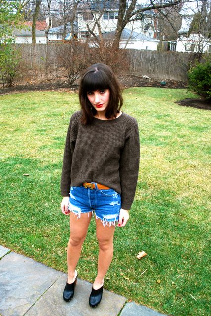 Warm and cozy, thermal is one of the greatest inventions for fabric in wintertime. In the warmest shade of nutmeg, this Vince sweater is fantastically neutral. Wonderful with brown as well as black, the fit is boxy and oversized, but cropped with a rounded hem and still feminine. The neckline is a flattering crew that is not too high or low. It looks great with jeans and a belt, or with a fitted skirt as Vince shows it on their website. My clogs (which is a trend I swore I'd never give in to) are from a little boutique in Paris. What I liked about them is that they had the subtle studs that weren't flashy or obnoxious like some of the clogs out there. The heel is just the right height and not too chunky, perfect for casual wear. I love the sharp black leather against the wood - they go with everything, and look great with a good pair of scrunched black socks.